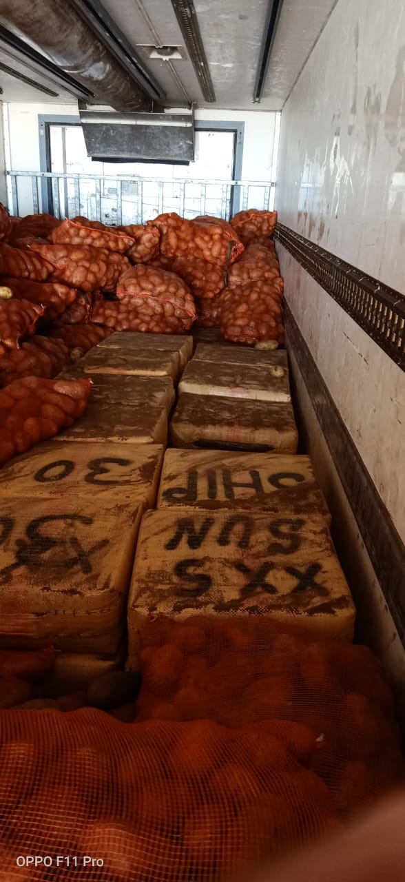 تمكنت صباح اليوم الإثنين عناصر الجمارك التي توجد بالكركرات الءي يفصل جنوب المغ ب و دول جنوب الصحراء ،من حجز حوالي 8 أطنان من مخدر الشيرا كانت على متن شاحنة متوجهة لدولة مالي و حسب المعلومات التي توصلت بها الجريدة فإن الشحنة كانت مخبأة بإحكام داخل البطاطس التي كانت وجهتها دولة مالي على أساس أنها بضاعة مصدرة،و للإشارة فإن هذا المعبر يعرف بين الفينة و الأخرى سقوط مثل هؤلاء المهربين،كما أن الإجراءات التي أصبحت متخذة بهذا المعبر قد حدت من مثل أنواع التهريب