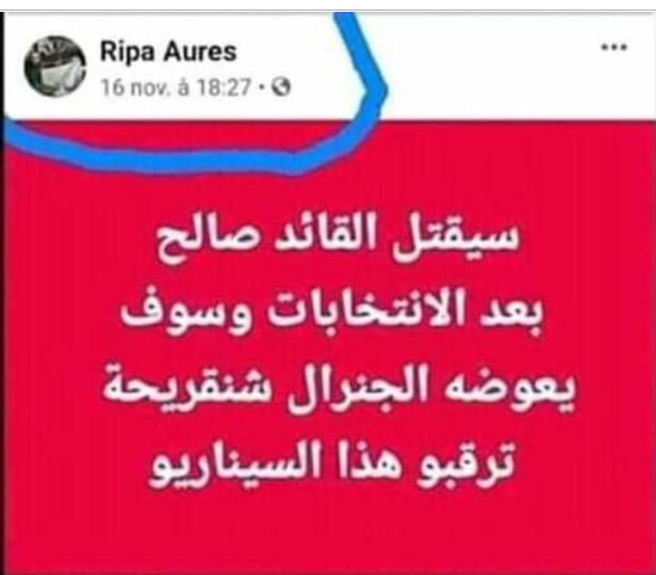يبدو أن هناك سيناريوهين الأول أن المدون قال هذا الكلام من باب التنبئات السياسية التي في الغالب تقع و تحدث نظرا للقرأة الجيدة للوضع في الجزائر أم أن صاحب هذه الصفحة يعلم أو له إطلاع أو مقرب من مراكز القرار. نترك القراء و المحللين و لأصحاب الصورة (فوط شوب) مذا صحة الأمر.