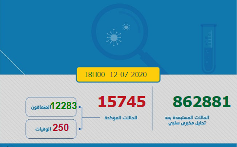 بينما بلغت الحالات الجديدة خلال 24 الماضية، 203 حالة ليبلغ إجمالي حالات الإصابة المؤكدة بالمملكة منذ الإعلان عن أول حالة في 2 مارس الماضي، 15 ألفا و745 حالة، وفي الوقت نفسه سجلت خمس حالات وفاة، ليرتفع العدد الإجمالي إلى 250، ولتستقر نسبة الإماتة في 1,6 في المائة،