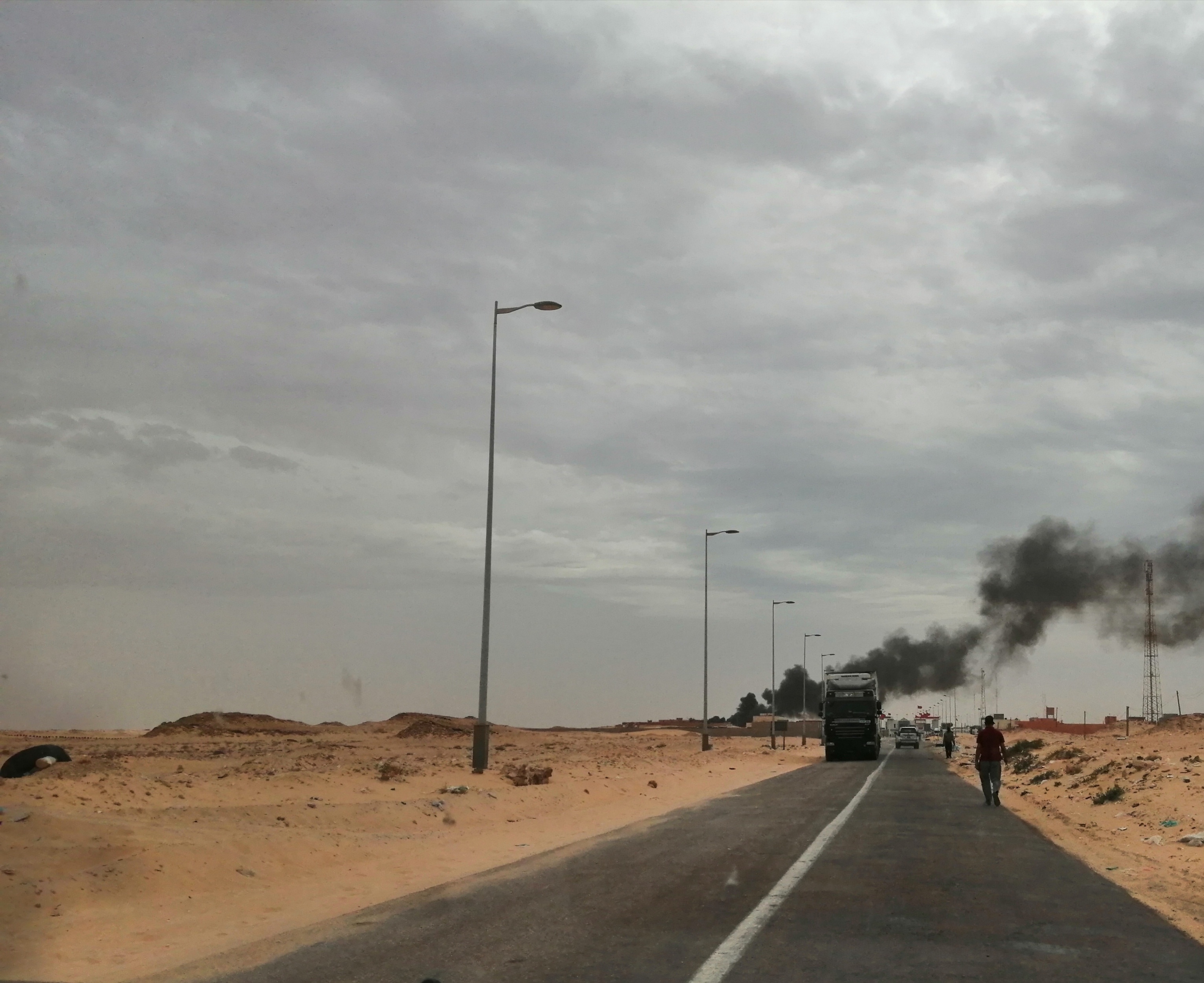 أقدم عمال للنظافة بمنطقة الكركرات ظهر يوم الإثنين على إحراق بعض المتلاشيات و عجلات مطاطية و بعض المواد التي تم التخلي عنها بهذه المنطقة، ماتسبب في اندلاع النيران في سيارة. و حسب القائمين على هذه العملية التي تمت بالقرب من الجدار الأمني إستدعت رجال المطافيء للتدخل من أجل إخمادها خشية من أن تصل إلى الجادر و بعض الشاحنات المتوقفة هناك تنتظر دورها بالدخول إلى الحرم الجمركي