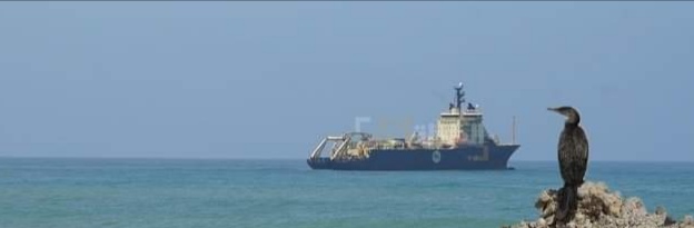 باخرة بسواحل الداخلة لمد حبل بحري للألياف البصرية