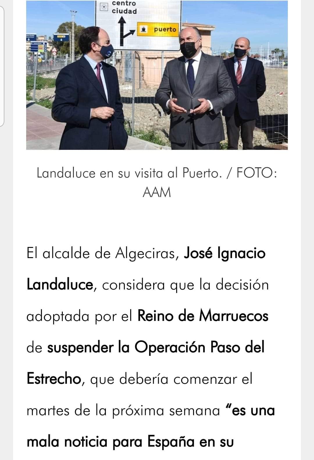 قال عمدة الجزيرة الخضراء “خوسي إغناسيو” ، خلال زيارة له للمركب المينائي في الجزيرة الخضراء،بأن قرار المغرب إلغاء عملية “مرحبا” يعد خبارا غير مفرح بالنسبة لإسبانيا عامة، والجزيرة الخضراء بصفة الخاصة، هذا فقد إعتبر عمدة الجزيرة الخضراء أن تعليق العملية، سيخلق أزمة حقيقية لكثير من القطاعات كالنقل البحري والشحن، وكالات الأسفار، ثم شركات المناولة، سيارات الأجرة ، بالإضافة إلى المطاعم، كل هذا سيعمق الأزمة الإقتصادية، التي ستضاف إلى معاناة العام الماضي، نتيجة أزمة كورونا، حسب تعبير العمدة.