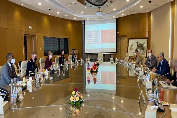 وعبر المسؤولان عن ارتياحهما لكثافة واستدامة وتميز علاقات التعاون الثنائي، من خلال عمليات التكوين وتبادل الخبرات، وعبر إجراء تدريبات مشتركة بشكل منتظم، ولا سيما تمرين “الأسد الإفريقي 2021″، الذي تعد نسخته السابعة عشرة أفضل تجسيد للمستوى الرفيع للتشغيل المتبادل الذي وصلت إليه قوات البلدين.وأشار المصدر نفسه، إلى أن السيد لوديي أبرز في هذا الصدد، الالتزام الثابت والاستراتيجية متعددة الأبعاد التي تقودها المملكة، والتي ت مليها الرؤية المتبصرة لجلالة الملك، نصره الله، في ما يتعلق بتدبير التحديات الأمنية، وأزمة الهجرة، وجائحة كوفيد-19. وأضاف البلاغ أنه في اليوم نفسه، وبتعليمات سامية من القائد الأعلى ورئيس أركان الحرب العامة للقوات المسلحة الملكية، استقبل الجنرال دوكور دارمي، المفتش العام للقوات المسلحة الملكية، على مستوى مقر قيادة الأركان العامة للقوات المسلحة الملكية، قائد الجيش، جيمس ماكونفيل، رئيس أركان القوات المسلحة للولايات المتحدة الأمريكية، الذي كان على رأس وفد عسكري.وبعد أن أكد المسؤولان العسكريان تمسكهما بمبادئ وأهداف التعاون العسكري المغربي الأمريكي، استعرضا فرص تطوير محاور التعاون العسكري، أكثر، والتي تتعلق على الخصوص بالتكوين والتمارين المشتركة وكذا تبادل التجارب والخبرات بين القوات المسلحة الملكية والقوات المسلحة الأمريكية. وخلص البلاغ إلى أن التعاون الاستراتيجي بين المملكة المغربية والولايات المتحدة الأمريكية، توج في أكتوبر 2020، بالتوقيع على مذكرة تفاهم ترسم خارطة الطريق العشرية “2020-2030″، من أجل توطيد العلاقات الثنائية في مجال الدفاع. عن موقع أحداث أنفو