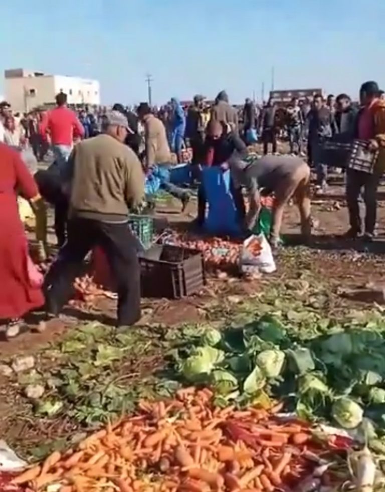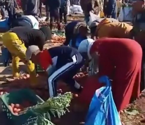 وقد كشفت الفيديوهات التي تم تصويرها مباشرة بسوق أحد أولاد جلول الواقع بضواحي القنيطرة، كيف اضطرت شاحنات الخضر، خاصة شاحنات الطماطم، إلى الفرار، في وقت وجد فيه التجار الذين كانوا يفترشون الأرض لسلعهم، أنفسهم في مواجهة هجوم المتسوقين الذي عمدوا إلى ملء قففهم وكذا أكياس من البلاستيك وحتى الصناديق، من الخضر التي أمعنوا في سرقتها بعد تعرض أصحابها للخطر واضطروا للفرار لكي يخرجوا من هذا السوق سالمين، مخلفين وراءهم بضائعهم، التي ظلت عرضة للنهب.
