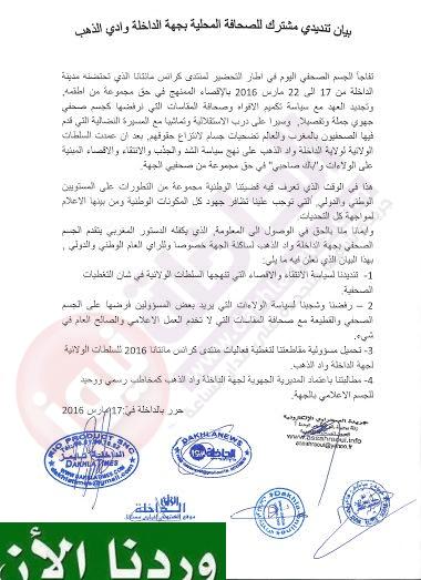 بيان تنديدي مشترك للصحافة المحلية لجهة الداخلة وادي الذهب