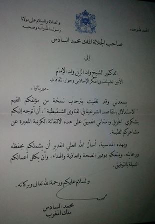 رسالة رسمية من ملك المغرب محمد السادس إلى فقيه موريتاني