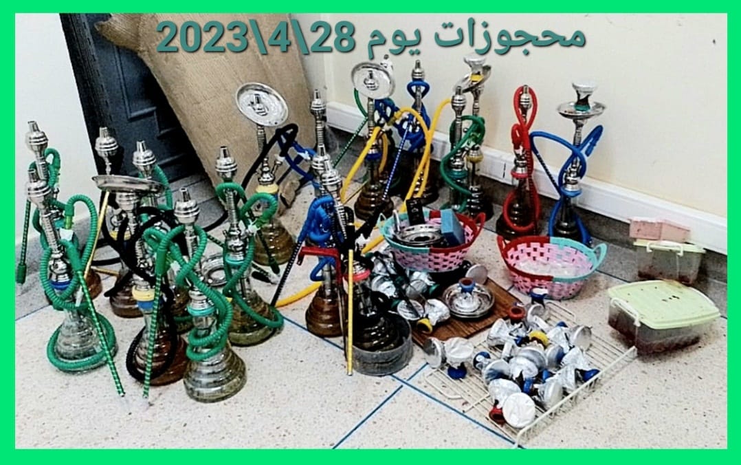 تمكنت مصلحة الدائرة الثانية للشرطة بولاية أمن العيون، يومي 21 و28 أبريل الجاري، من توقيف سبعة أشخاص، تتراوح أعمارهم ما بين 17و 42 سنة، إثر مداهمت رجال الأمن لمقهى بحي مولاي رشيد، تم خلال هذه العملية توقيف صاحب المقهى وامرأة تبين فيما بعد أنه مبحوث عنها وطنيا من أجل النصب، وكذا خمسة أشخاص من مساعديه، كما تم حجز 34 نرجيلة، علاوة على 60 رأس خاص بها جاهزة للتدخين، وكذا 700 غرام من مادة “التبغ المعسل” كانت داخل المقهى، بالإضافة إلى مبلغ مالي.