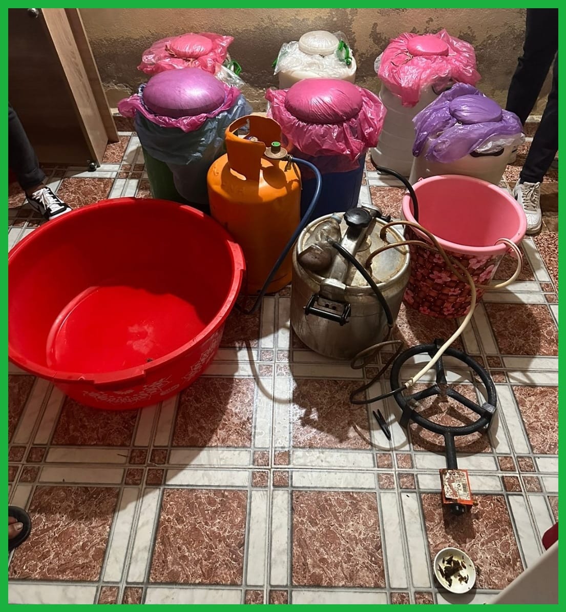 تمكنت عناصر منورقة مكافحة الشرطة القضائية بولاية أمن العيون، مساء يوم أمس الإثنين 2 شتنبر، من توقيف شخص يبلغ من العمر 38 سنة، في حالة تلبس بحيازة قنينتين من مسكر “الماحيا” تقليدية الصنع، ليتم تفتيش مسكنه الذي عثر بداخله 180 لترا من المواد المخمرة، علاوة على 20 لترا من صافي مسكر “الماحيا”، وستة براميل، كما تم حجز معدات معمل تقليدي خاص بعملية التقطير.