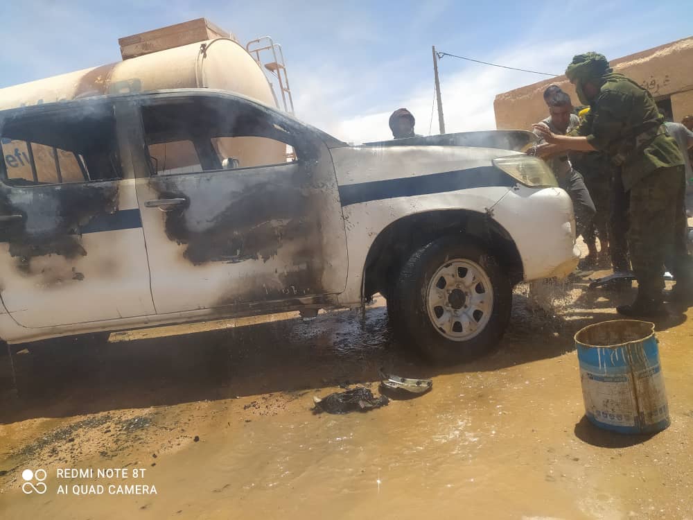 تشهد مخيمات الصحراويين بتندوف، منذ صباح اليوم الثلاثاء حالة من التوتر و الإحتقان غير المسبوقين، بعد ما تم الإعتداء وتعنيف مجموعة من النساء الصحراويات من طرف ميليشيات تابعة لجبهة البوليساريو، هذا الحادث الذي زاد حدة عندما تم إعتقال حوالي خمسة نساء بسجن الذهبية من طرف قيادة الرابوني، الشيء الذي دفع العشرات من الصحراويين بمخيم لعيون يقومون بحرق مركز للشرطة وسيارة تابعة له، كما سمع في المكان أصوات الرصاص الحي ، الأمر الذي تقول بعض المصادر من المخيمات بأن قيادة البوليساريو تعيش أحلك ساعاتها نتيجة الإحتقان الذي تشهده هذه المخيمات، وعمدت قيادة الرابوني على إستقدام ميليشياتها المدججة بالسلاح، التي كانت بالناحية الخامسة كما تسميها، وأخرى من منطقة ما تسمى بدائرة الگلتة، من أجل تأمين وحراسة ما تعتبره القيادة مراكز حساسة كمقر “التلفزة” و الكتابة العامة، كما ضربت قيادة البوليساريو طوقا أمنيا أخر على مخيم الرابوني الذي يضم كل المخيمات.