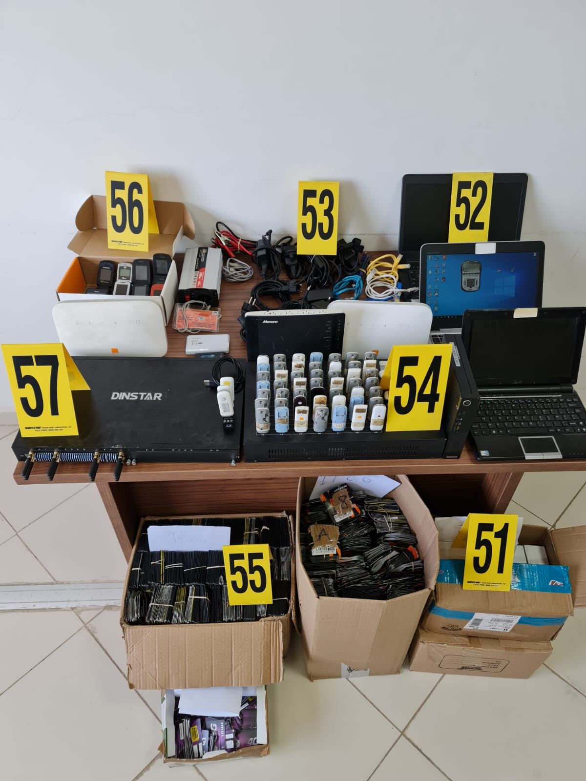 عملية التفتيش المنجزة داخل الشقة التي يستغلها المشتبه فيه أسفرت عن حجز حوالي 7000 شريحة للاتصالات الهاتفية الوطنية، بالإضافة إلى أربع حواسيب محمولة، وأجهزة إلكترونية ودعامات معلوماتية متنوعة تستعمل في هذا النشاط الإجرامي.
