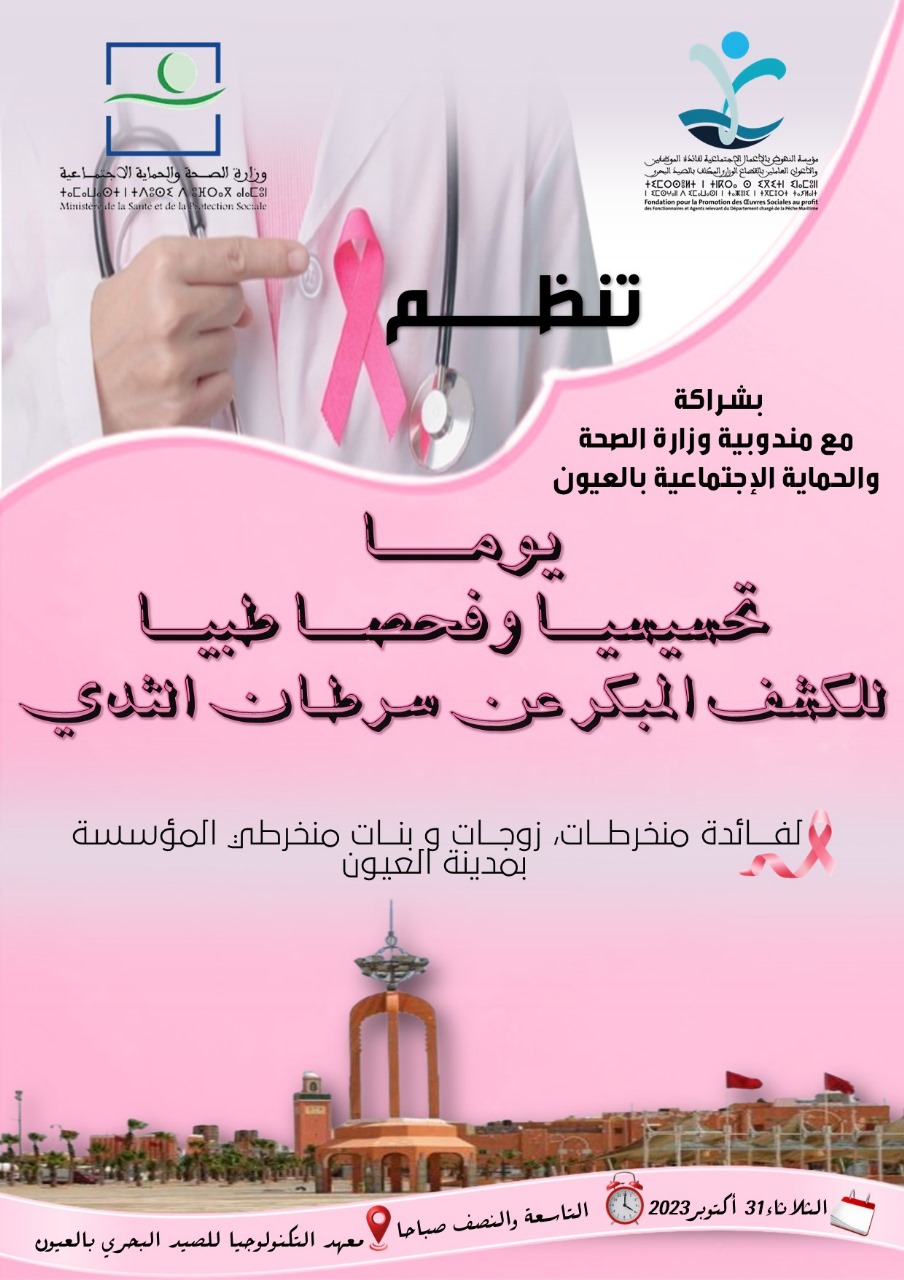 إحتضن فضاء معهد التكنولوجيا للصيد البحري بالعيون اليوم الثلاثاء، يوما تحسيسيا من أجل الكشف المبكر عن سرطان الثدي نظمته مؤسسة النهوض الأعمال الاجتماعية لفائدة الموظفين والأعوان العاملين بالقطاع الوزاري المكلف بالصيد البحري بشراكة مع مندوبية وزارة الصحة والحماية الإجتماعية.
