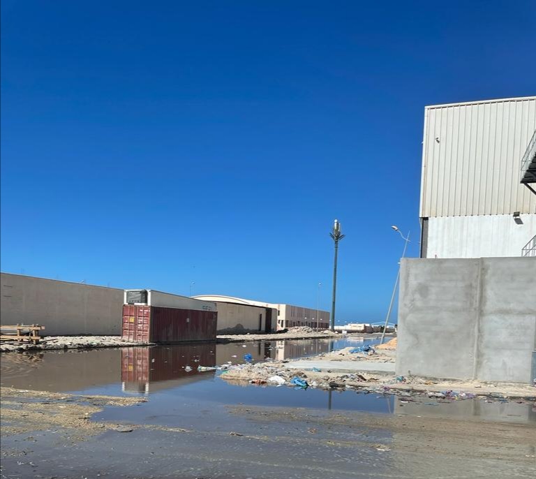 كما تجول الموقع بالمنطقة الصناعية التي تضم مجموعة من الوحدات الصناعية للمنتجات البحرية، والتي تعد قطب التنمية بالجهة لكن المنطقة تتعرض كل مرة لإختناقات مجاري الصرف الصحي التي تتدفق مياهها في أزقة وشوارع واحدة من أكبر المناطق الصناعية،التي تصل سعتها الإجمالية إلى ما يزيد عن 600 ألف طن، ورقم معاملات يقدر ب 2.5 مليار درهم، مخلفة كل مرة وضعا بيئيا كارثيا، حيث الروائح الكريهة التي تزكم أنوف الساكنة وسلامتهم الصحية بما فيها اليد العاملة التي تقدر بالآلاف، هذه الوضعية التي تهدد الاستثمارات، ومنتجات التصدير، والتي صنفت المنطقة بعض الجمعيات بأنها نقطة سوداء بمدينة الداخلة، تقلق المستثمرين والعاملين على حد سواء، والتي لم تجد حلا جذريا لحد الساعة حسب نفس المصادر.