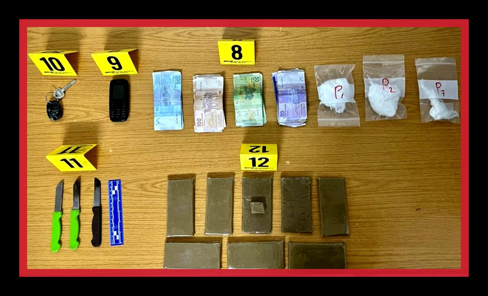 وحسب ذات المصدر فقد تم تفتيش مسكنه، الذي عثر بداخله كمية أخرى من مخدر الشيرا عبارة عن 08 صفائح، بلغ وزنها 550 غراما، بالإضافة إلى ثلاث جرعات من مخدر الكوكايين، بلغ وزنها 110 غراما، كما تم حجز سكينين آخرين، وسيارة خفيفة يستعملها في تنقلاته أثناء عملية الترويج.