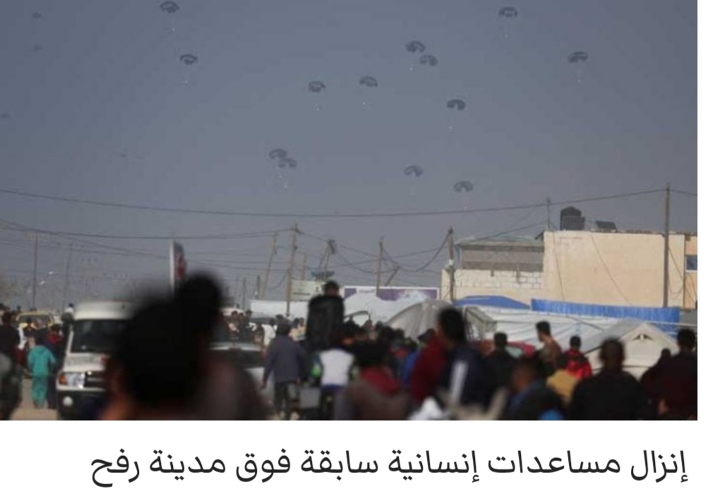 وقد تم يوم أمس الأربعاء، ألقاء عدة مساعدات غذائية محدودة للفلسطينيين شمال قطاع غزة، للمرة الأولى منذ بداية الحرب الإسرائيلية في 7 أكتوبر 2023، بواسطة طائرات،