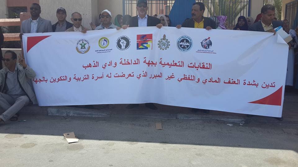 كما أدان ذات البيان سلوك المدير الإقليمي لوادي الذهب لدى الأكاديمية الجهوية للتربية و التكوين بدعوته لاجتماع تزامن و انطلاق الوقفة الاحتجاجية، ضم ممثلا عن السلطة المحلية في محاولة مفضوحة للتشويش على المحطة النضالية.