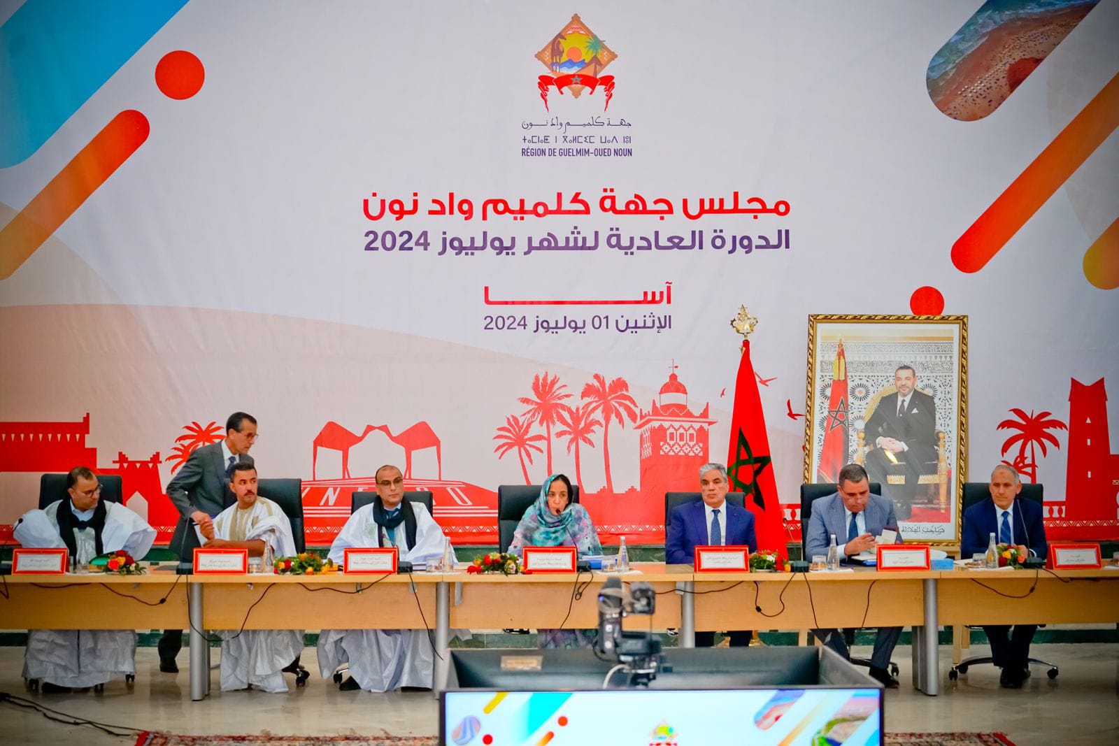 عقد مجلس جهة كلميم واد نون دورته العادية لشهر يوليوز يوم الإثنين، بمدينة آسا، برآسة رئيسة الجهة وبحضور السيد والي الجهة والسادة عمال صاحب الجلالة على أقاليم الجهة، بالإضافة إلى أعضاء مجلس الجهة وممثلي المصالح الخارجية المعنية، بنقط جدول أعمال الدورة، وقد صادق مجلس الجهة خلال دورته العادية على عدد من الإتفاقيات، كتمويل وإنجاز البرنامج الإستعجالي الخاص بإعادة التأهيل الحضري للأقاليم الأربعة للجهة، بمبلغ مالي قدره 1200 مليون درهم. وهي شراكة ستساهم، بشكل كبير، في دعم الأنسجة الحضرية عبر تراب الجهة.