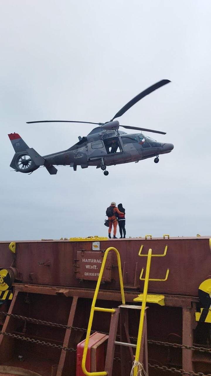 تلقت، اليوم الخميس، البحرية الملكية، إشارة من لدن مركز تنسيق عمليات البحث والإنقاذ تفيد بوجود مريض في حالة حرجة على متن سفينة شحن تدعى “سي إيكل” تحمل العلم المالطي وتتواجد على بعد 75 كيلومترا غرب مدينة الرباط، الأمر الذي عجل بفرقة من البحرية الملكية إلى إرسال طائرة مروحية إلى عين المكان، حيث قامت بنقل المريض، والتوجه به على وجه السرعة إلى المستشفى الجامعي الدولي الشيخ خليفة بالدار البيضاء لتلقي العلاجات الضرورية.