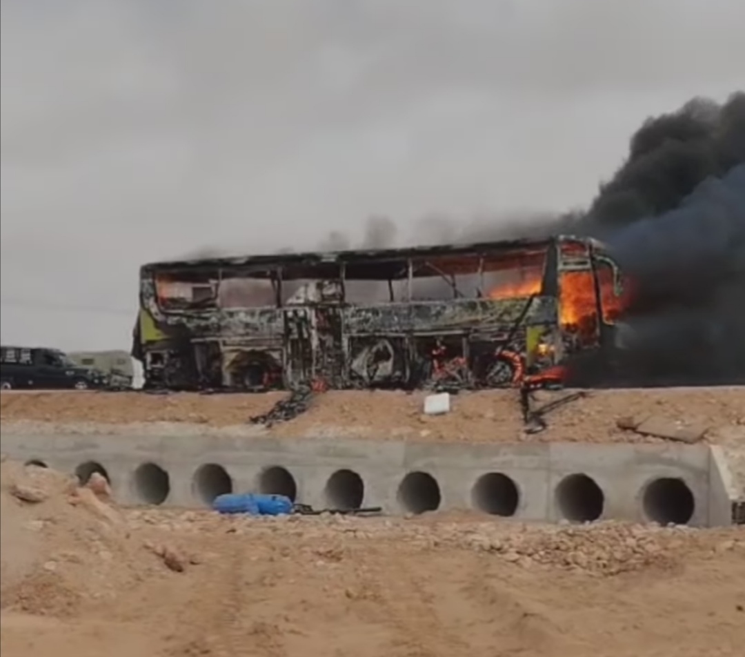 إحتراق حافلة على الطريق الوطنية رقم ١ بين أشبيكة والوطية