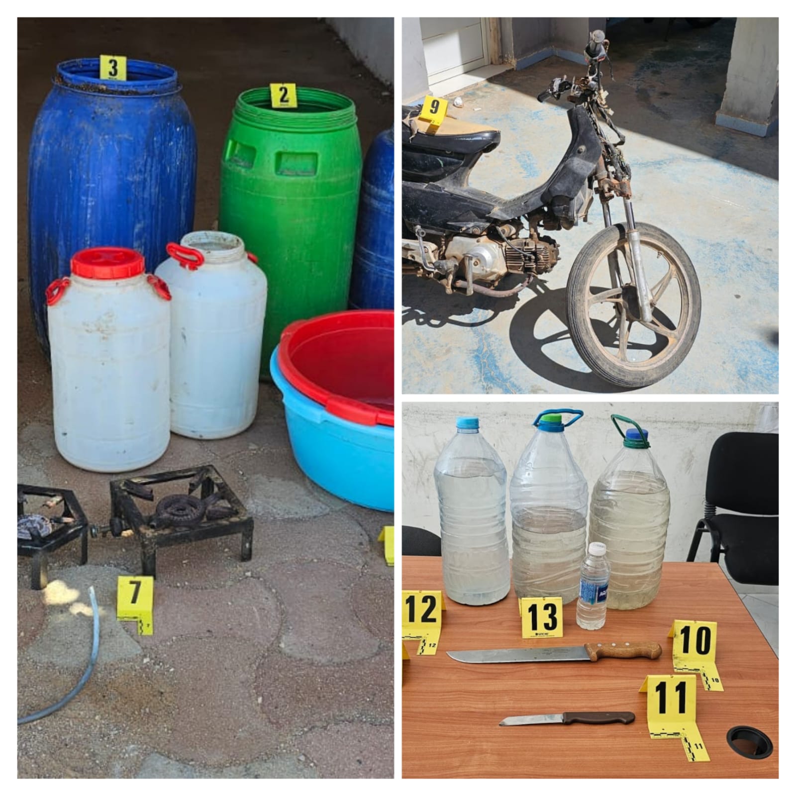 وفي ذات السياق قال المصدر ذاته بأن عملية تفتيش لمسكن المشتبه فيه أفضت إلى حجز معدات معمل تقليدي لصنع “الماحيا”، كما جرى حجز مجموعة من البراميل تضم زهاء 400 لتر من المواد المخمرة، علاوة على 15 لترا من صافي المسكر، وكذا سكين آخر من الحجم الكبير، ودراجة نارية مشكوك في ملكيتها.