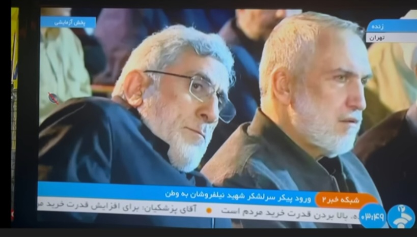 عرض التلفزيون الإيراني الرسمي اليوم الثلاثاء، لقطات لشخص يبدو أنه القائد الأعلى لفيلق القدس إسماعيل قاآني، وذلك خلال مراسم تأبين قائد كبير في الحرس الثوري الإيراني اغتيل في لبنان.