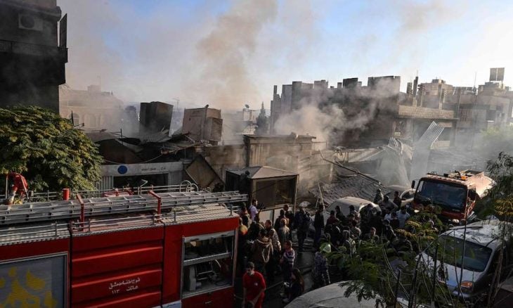 قالت وكالة الأنباء السورية “سانا”، أن العدو الإسرائيلي شن عدوانا جويا من إتجاه الجولان السوري المحتل، مساء اليوم الخميس، مستهدفا عددا من الأبنية السكنية في حي المزة بدمشق ومنطقة قدسيا في ريف دمشق، وأضاف ذات المصدر أن العدوان الإسرائيلي أدى وفق حصيلة أولية إلى إستشهاد 15 شخصا وإصابة 16 آخرين، بينهم نساء وأطفال، ولفت المصدر إلى أن العدوان أدى كذلك إلى وقوع أضرار مادية كبيرة في الممتلكات الخاصة والمباني المستهدفة والمجاورة، دون تقديم تفاصيل أخرى بالخصوص.