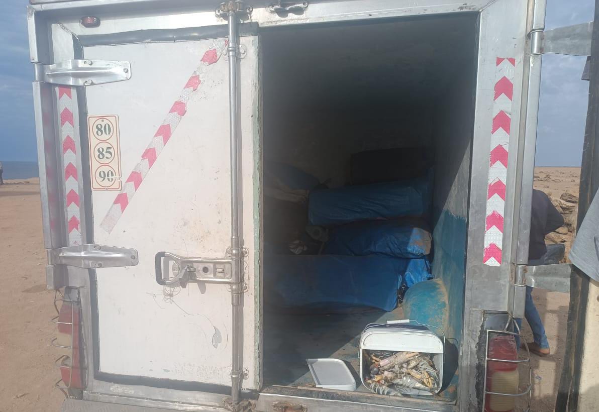 أكد مصدر من مدينة الداخلة أن عناصر الدرك الملكي التابعة لجهة الداخلة، تمكنت من حجز 1100 كلغ من الأخطبوط، على مقربة من نقطة تفريغ السمك انترفت، التي تقع على بعد 75 كلم شمال مدينة الداخلة، كانت بداخل سيارة نفعية بالإضافة إلى 28 اطار مطاطي، كانت تستعمل في عملية صيد الأخطبوط، علاوة على ادوات للصيد ممنوعة.