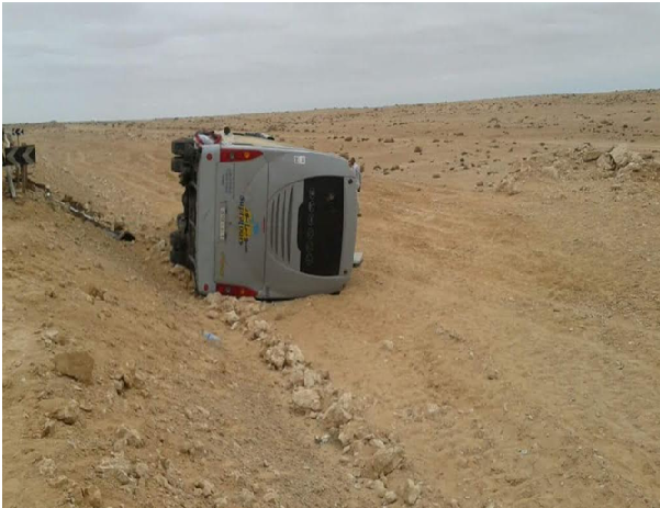 أكد مصدر للجريدة أن الطريق الوطنية رقم 1 الرابطة بين مدينة طرفاية و مدينة العيون و بالضبط بنفوذ جماعة الدورة التي تقع شمال مدينة العيون، قد شهدت صباح يوم الإثنين، حادثة سير خلفت 12 مصاب كانوا على متن الحافلة بينما صاحب السيارة قد أصيب بكسر على مستوى الرجل إلا إن إبنه (صبي) حالته جد حرجة حيث يوجد في العناية المركزة و حسب ذات المصدر فإن الحادث كان نتيجة اصطدام بين سيارة خفيفة و حافلة لنقل المسافرين كانت تسير في الاتجاه المعاكس.و يضيف ذات المصدر أن جميع المصابين قد تم نقلهم إلى قسم المستعجلات بالعيون بواسطة سيارات للإسعاف،هذا فيجهل سبب الحادث إلى حدود كتابة هذه السطور.