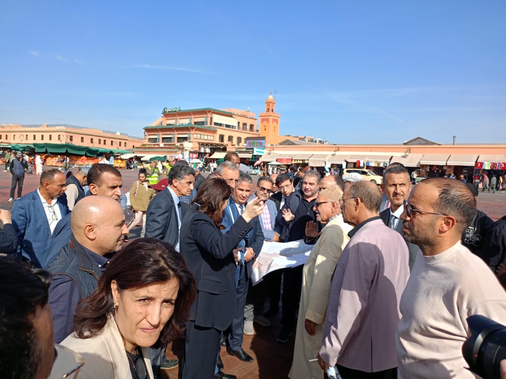 تفقد ت السيدة فاطمة الزهراء المنصوري ،عمدة مدينة مراكش ووالي جهة مراكش آسفي فريد شوراق مرفوقا بالسيد باشا المدينة عبد الرفيع علوي والنائب الأول المكلف بالأشغال محمد الإدريسي ،في إطار زيارة ميدانية ساحة جامع الفنا للإطلاع على آخر الترتيبات والاستعدادات قبل إطلاق أشغال تهيئة الساحة بشكل رسمي إعتبارًا من يناير 2025.