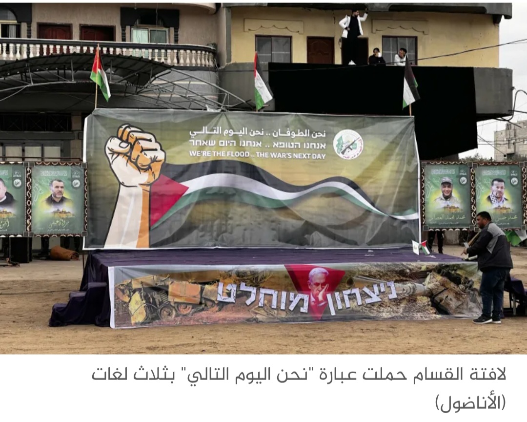 “يافطة” القسام “نحن اليوم التالي” بموقع تسليم الأسرى ردا على نتنياهو