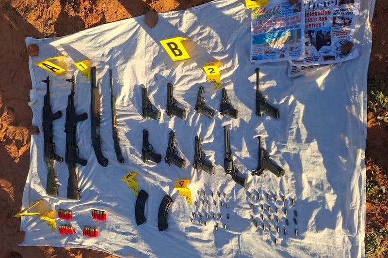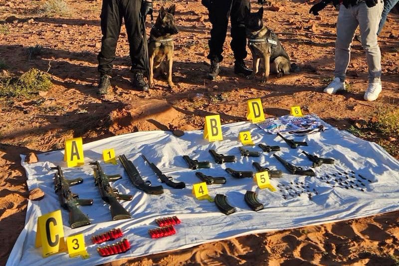 وقد مكنت عمليات التفتيش والتمشيط، التي استغرقت أكثر من ثلاث ساعات تقريبا، من العثور على شحنة من الأسلحة والذخيرة النارية مدفونة في مكان منزو أسفل المرتفع الصخري، كانت ملفوفة في أكياس بلاستيكية وجرائد ورقية منشورة بدولة مالي، من بينها أسبوعيات ورقية صادرة بتاريخ 27 يناير 2025.