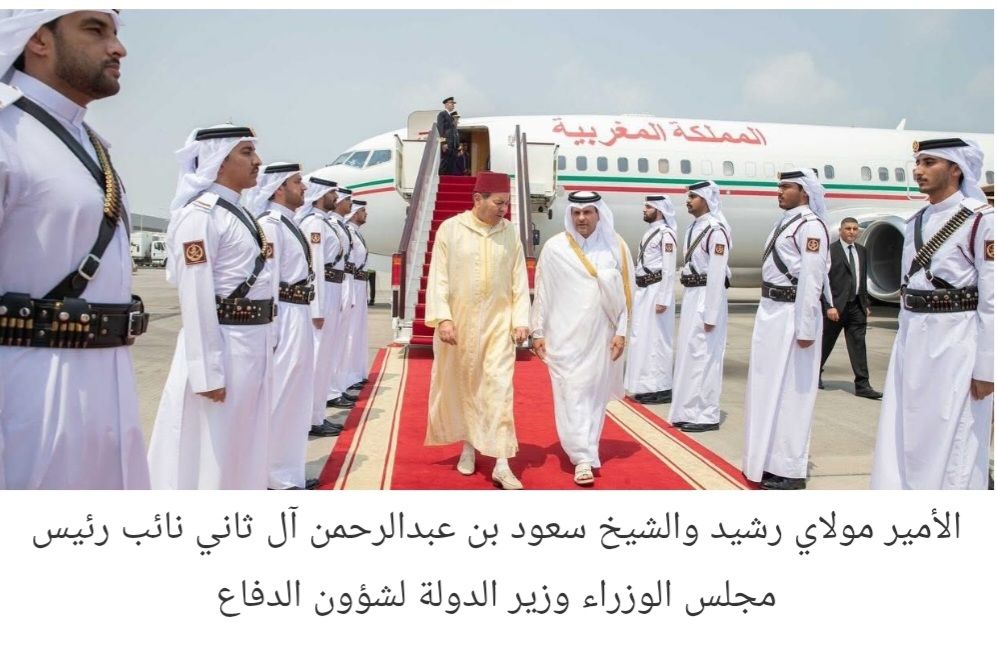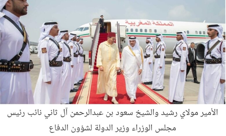 ووجد الأمير مولاي رشيد في استقباله بمطار حمد الدولي، الشيخ سعود بن عبد الرحمن بن حسن آل ثاني، نائب رئيس مجلس الوزراء وزير الدولة لشؤون الدفاع القطري.
