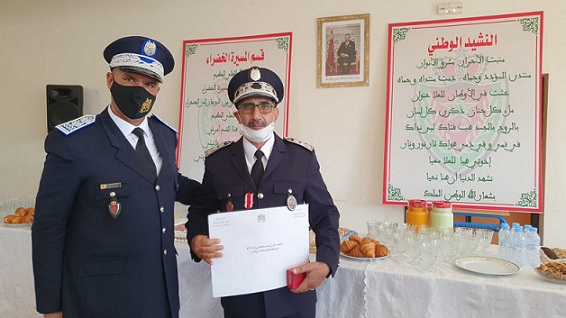 بمناسبة الذكرى66 لتأسيس المديرية العامة للأمن الوطني، تم توشيح ضابط ممتاز يعمل بمصلحة السير و الجولان بالمنطقة الأمنية بگلميم ، بوسام ملكي، وذلك اعترافاً بالمجهودات التي يبذلها في أداء مهمته.
