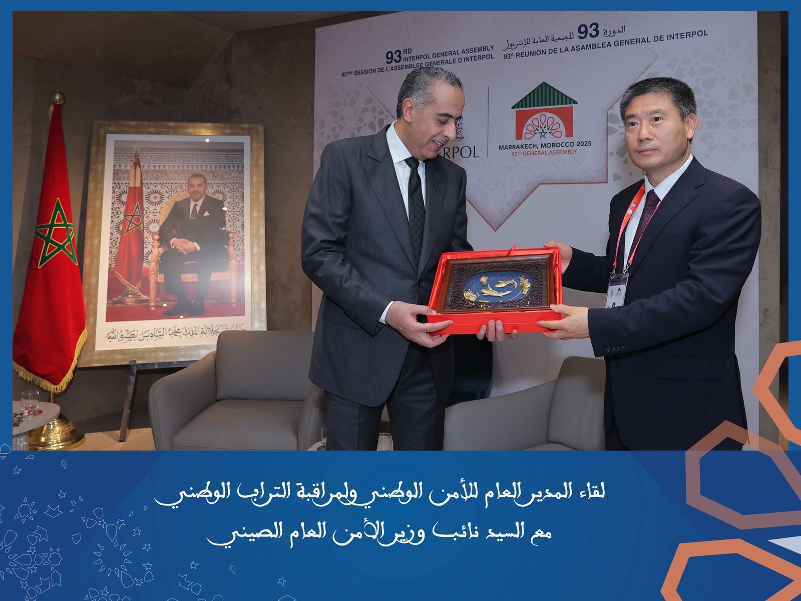 عقد المدير العام للأمن الوطني ولمراقبة التراب الوطني عبد اللطيف حموشي والوفد الأمني المرافق له، ثلاثة وأربعين اجتماعا ثنائيا مع رؤساء وفود الدول والمنظمات الدولية المشاركة في أشغال الجمعية العامة للمنظمة الدولية للشرطة الجنائية أنتربول، التي تحتضنها مدينة مراكش خلال الفترة الممتدة ما بين 24 و27 نونبر 2025.