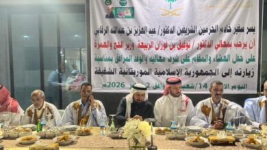 وخلال المناسبة، رحّب السفير السعودي بمعالي وزير الحج والعمرة والوفد المرافق، مؤكدًا متانة العلاقات الأخوية التي تجمع موريتانيا والمملكة العربية السعودية، وحرص قيادتي البلدين على تعزيزها في مختلف المجالات.
