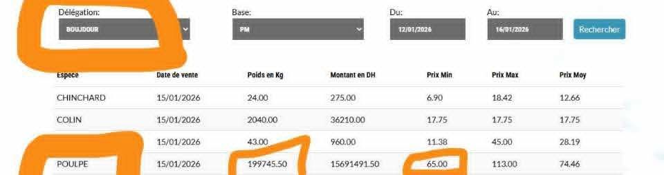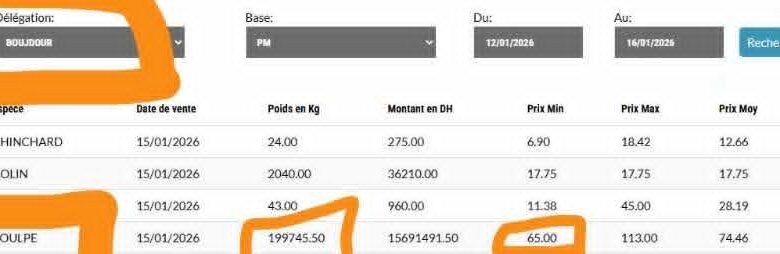 حلت، صباح يوم الجمعة الماضي، لجنة مركزية تابعة لوزارة الصيد البحري بسوق السمك بميناء بوجدور، مرفوقة بلجنة تفتيش من المكتب الوطني للصيد، وذلك في إطار عملية مراقبة شملت فحص قاعدة بيانات مبيعات الأسماك، والتحقق من كميات الأخطبوط المصرح بها والأسعار المعتمدة برسم يوم 14 يناير 2026، إضافة إلى تدقيق قاعدة بيانات الوزن.