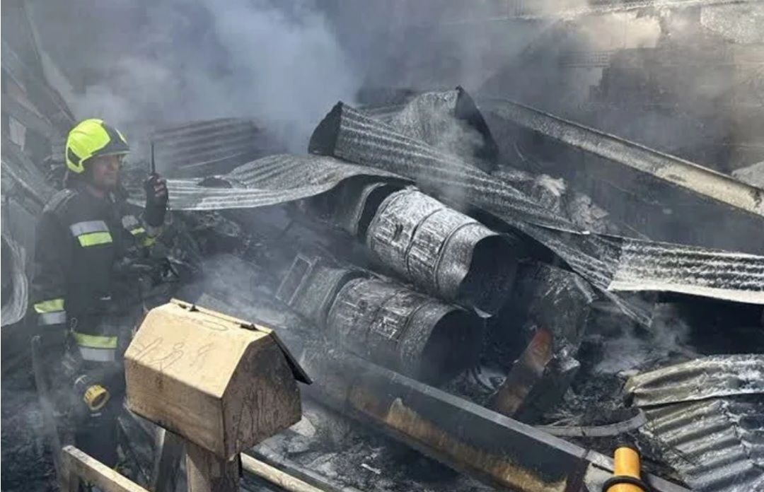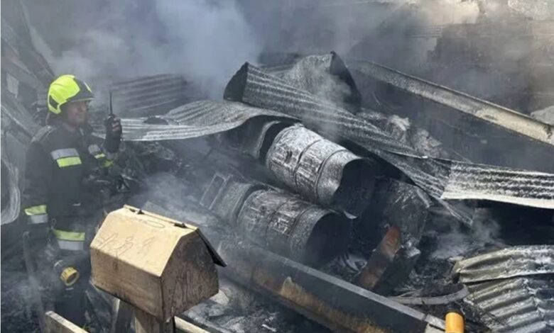 وتعمل فرق الطوارئ على السيطرة على الحريق وإخلاء المنطقة.
