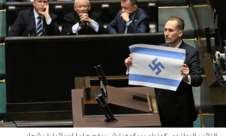 نائب بولندي يشعل البرلمان: علم إسرائيلي بشعار “النازية” واتهامات بإبادة جماعية في غزة