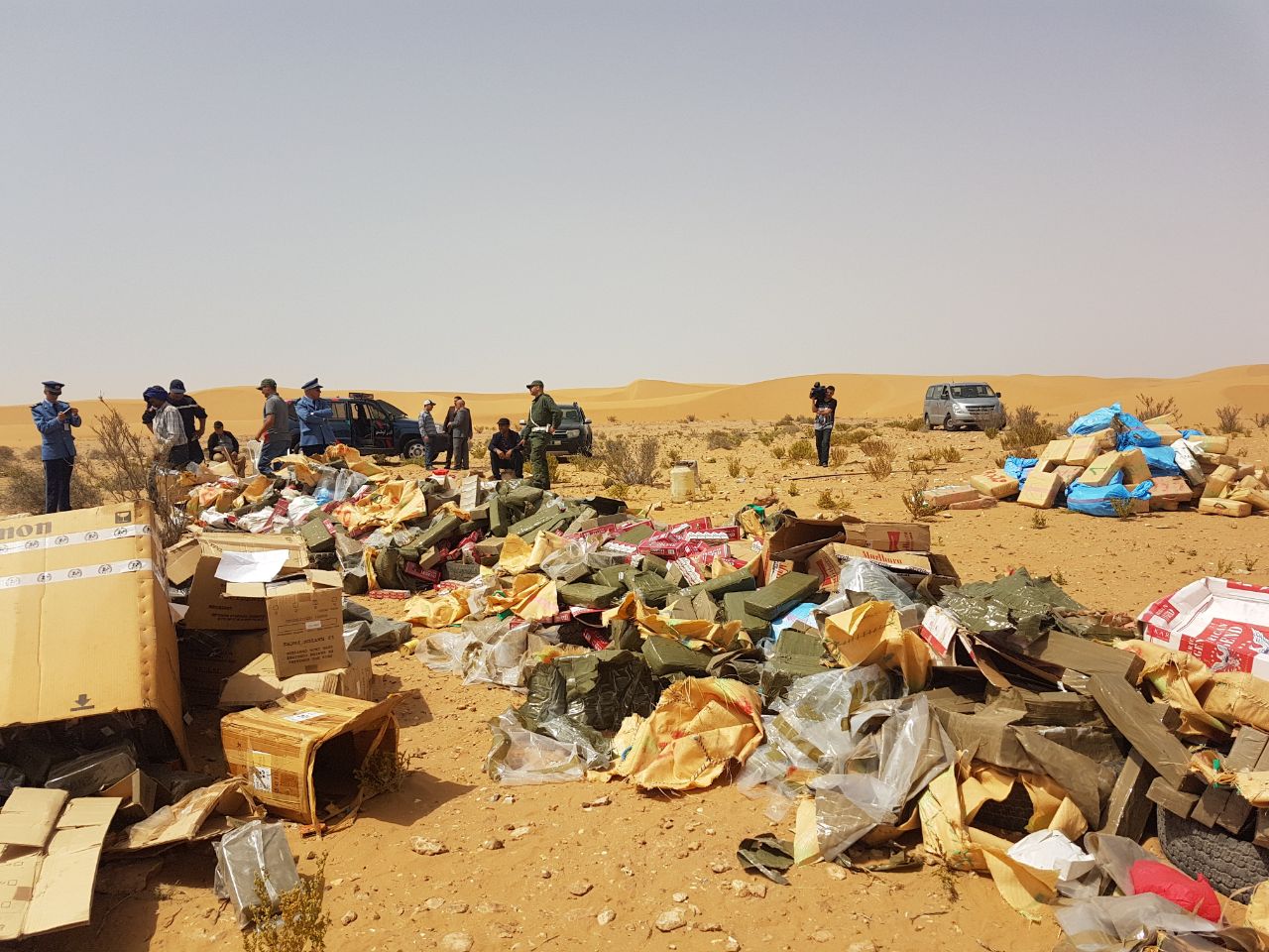 جمارك العيون تتلف كمية مهمة من المخدرات .