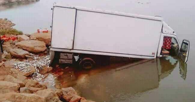 إنحراف شاحنة محملة بالسمك بمصب وادي أشبيكة.