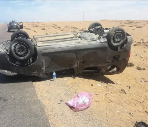 إصابة شخص انقلاب سيارة في طريق طرفاية.