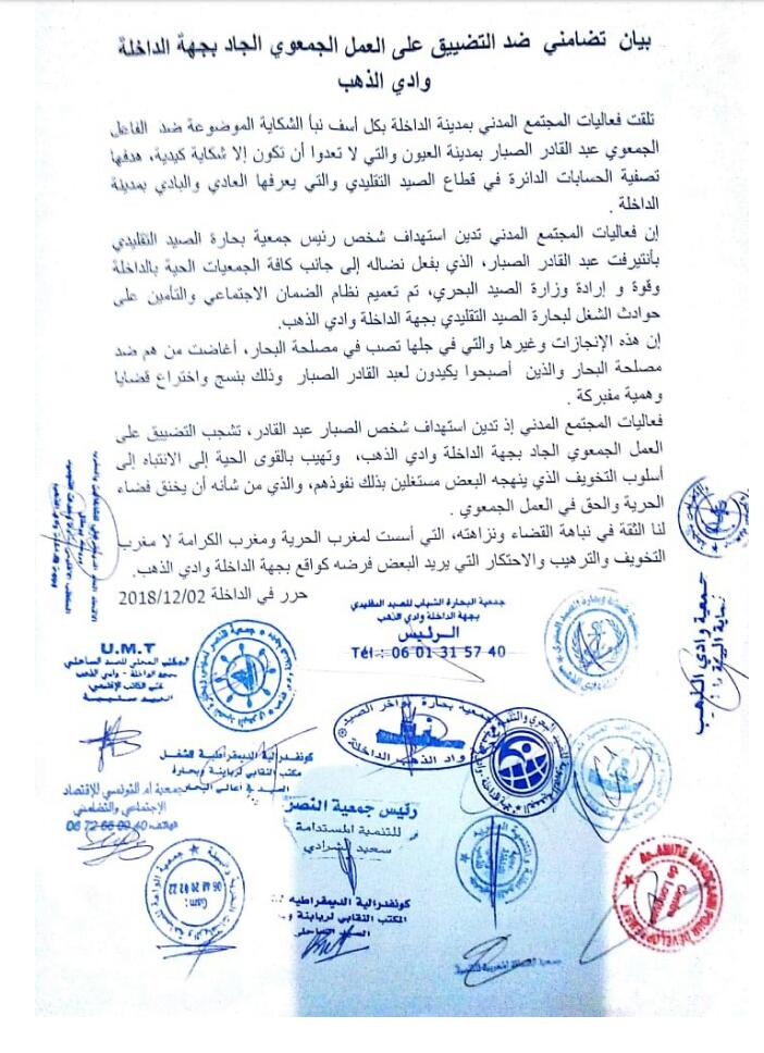 جمعيات بالداخلة تتضامن أم التستر ؟