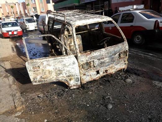 سيارة للنقل السري تلتهمها النار دون خسائر بشرية.